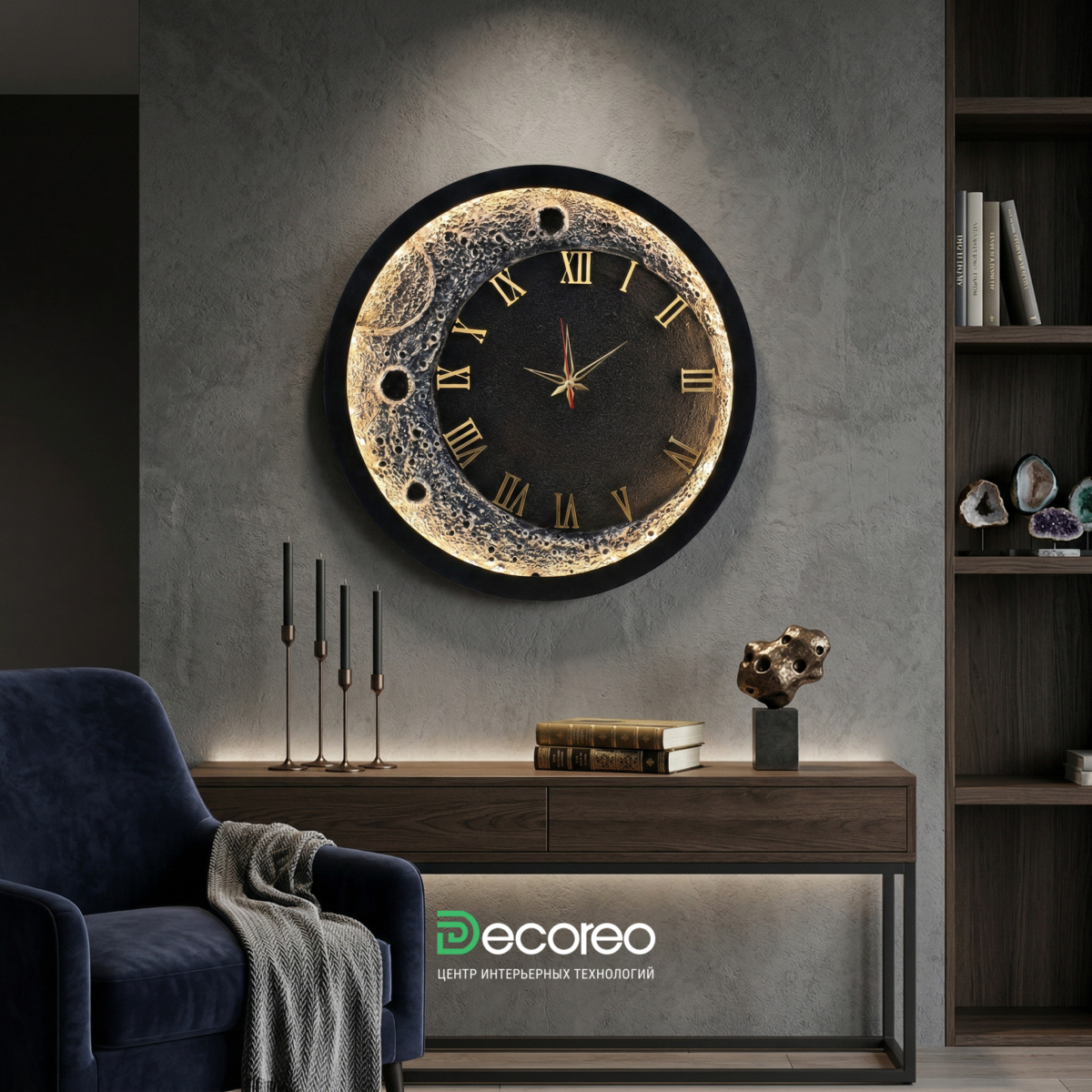 Настенные часы из гипса с подсветкой.